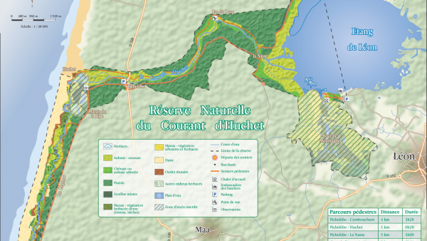 La réserve du courant d'Huchet possède des espaces et des habitats naturels particulièrement riches et diversifiés, dont plusieurs sont identifiés com